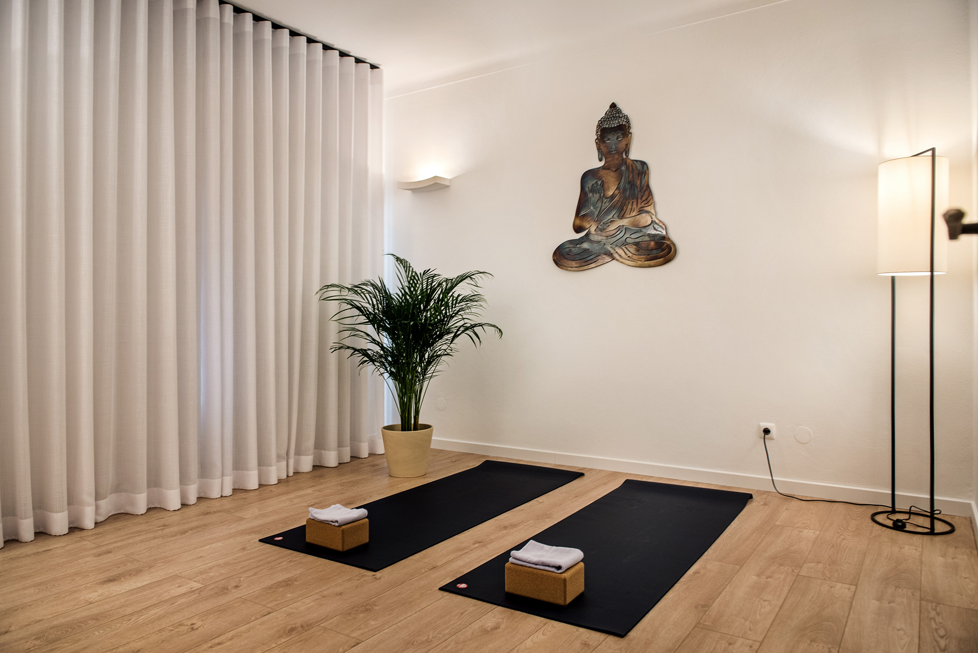 We provide yoga mats and equipment including a small hand towel. Wear comfortable clothes for the yoga practice. You can also bring a warm top and/or socks for the relaxation time at the end of class.
